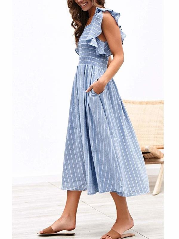 一件甜美的露背连衣裙,带着飘逸的灯笼袖。它有S-XL和29种款式可供选择。
